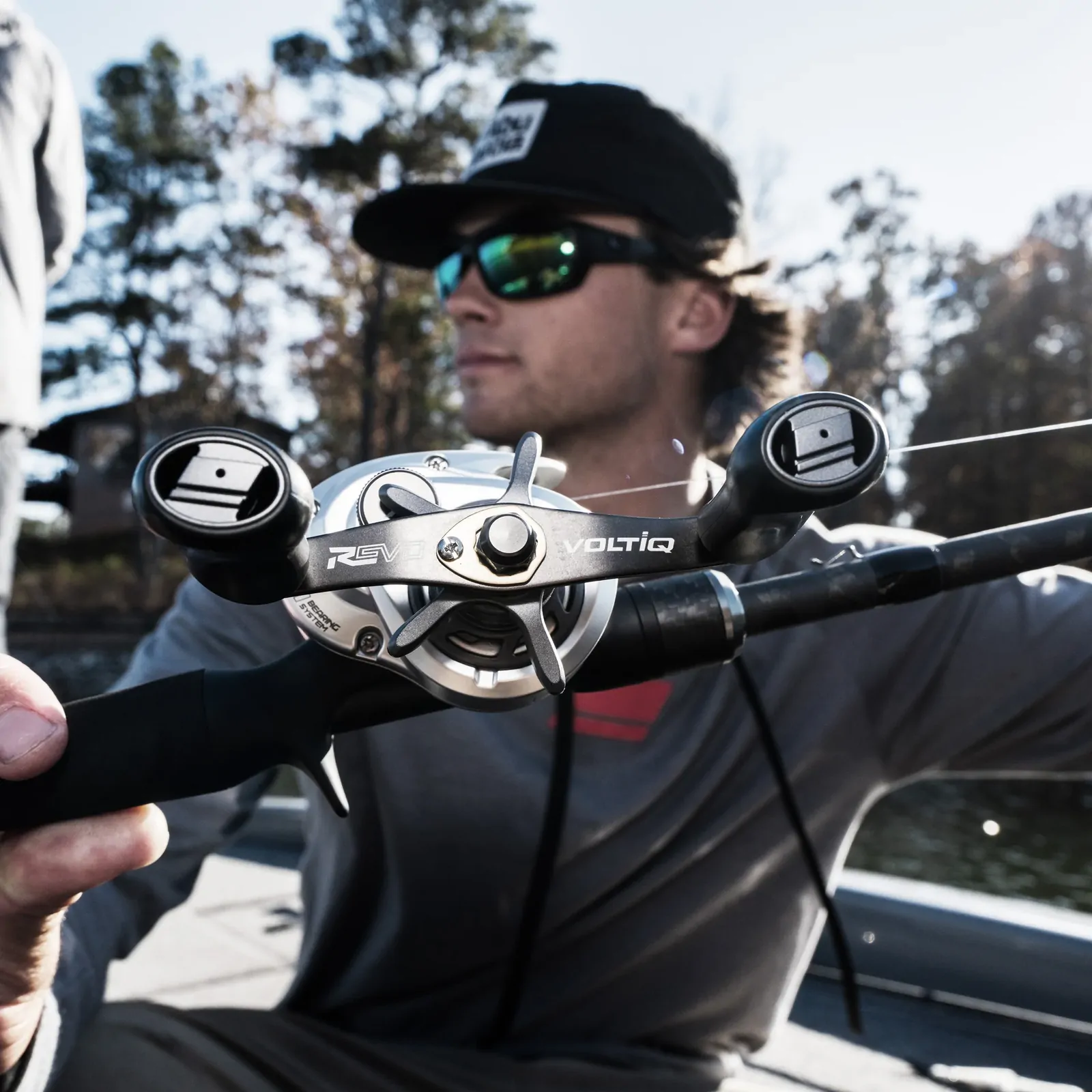 Built on the same, rigid and versatile platform as the popular Revo® SX baitcasting reel, the Revo® SX VoltiQ™ low profile reels incorporate Abu Garcia’s innovative VoltiQ™ (Electronic Casting System) braking technology. This allows anglers to fish any situation by reading the spool’s rotation and making fine adjustments to the brake accordingly, helping to improve overall casting performance. The new VoltiQ™ technology features an electronic casting system, delivering a highly adjustable reel designed to offer extensive adjustability to anglers.