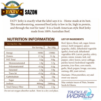 So the name Sazón is our beef jerky that we know is perfection with a fine blend of sweet paprika, curry powder, rice, salt and crushed chilli. There is a touch of chilli, only to give you a hint of a kick.